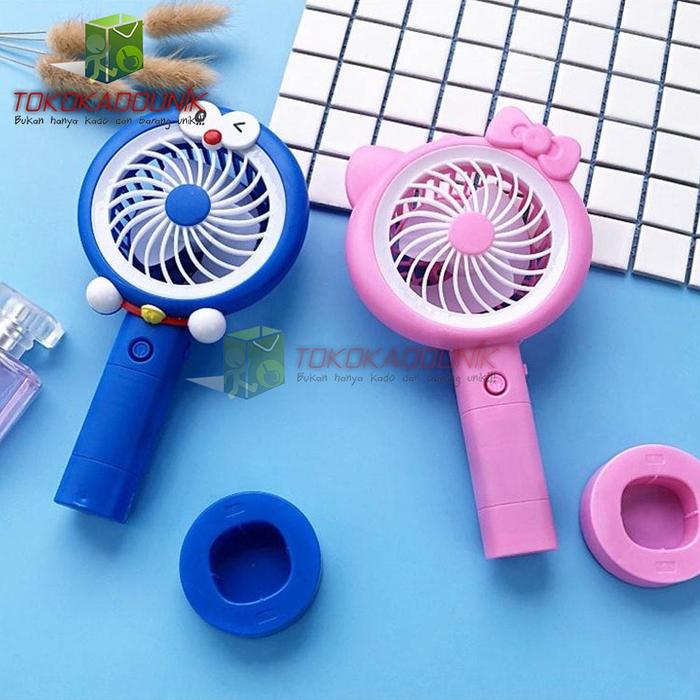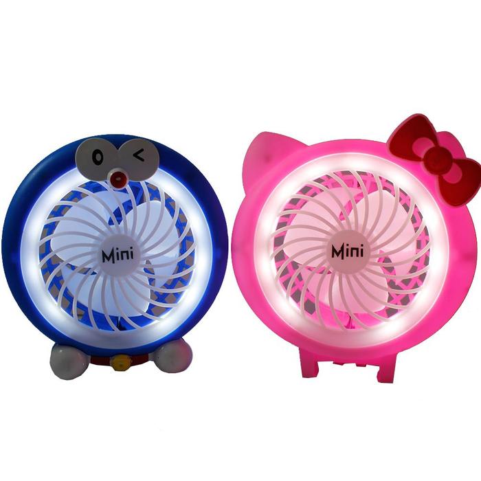Kipas kartun - cartoon fan ada lampu led rechargeable - bisa berdiri - random - random