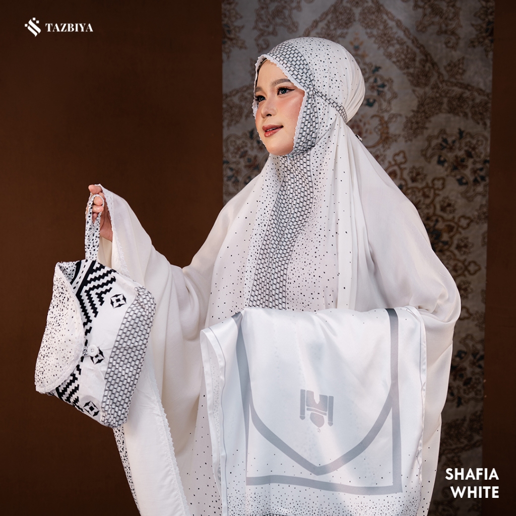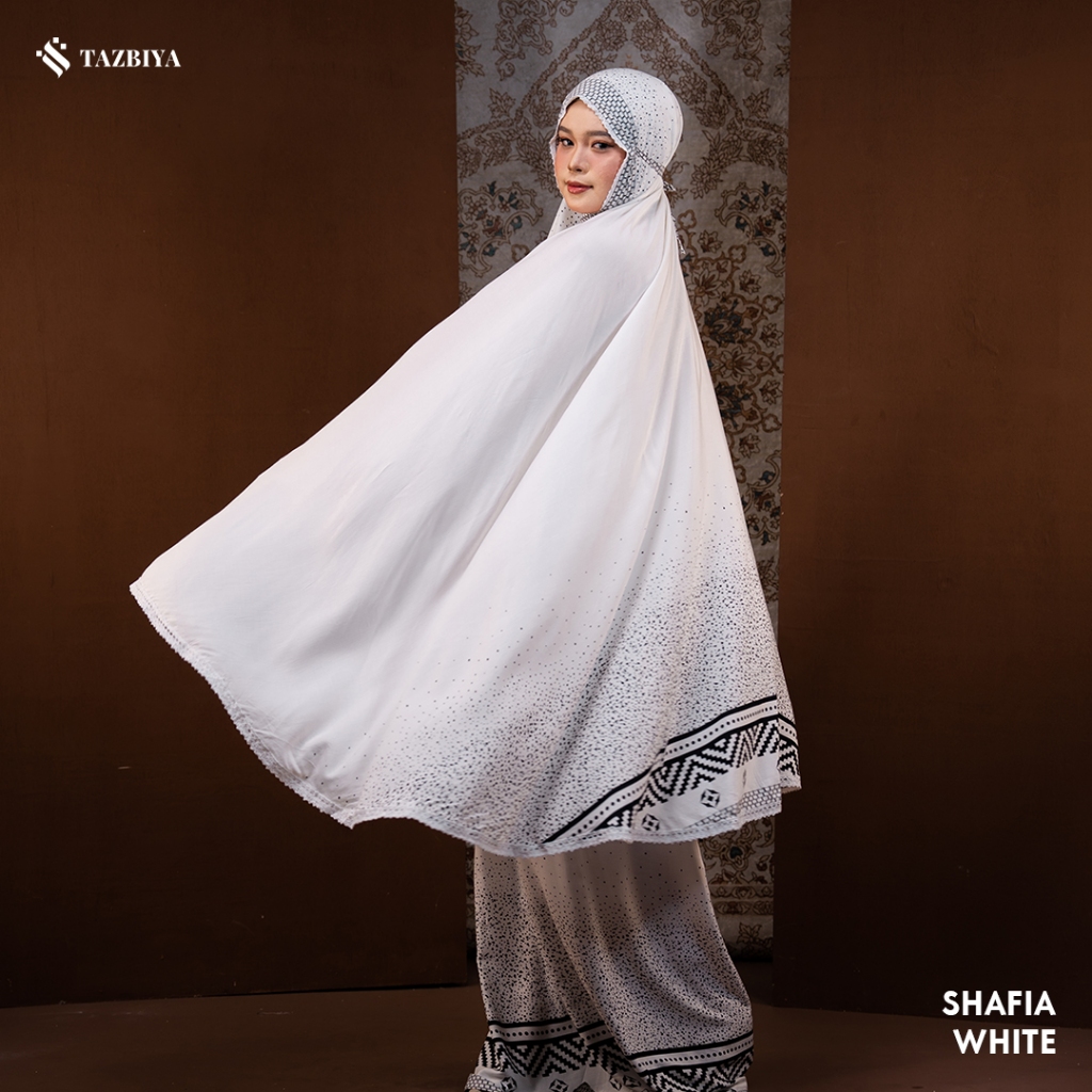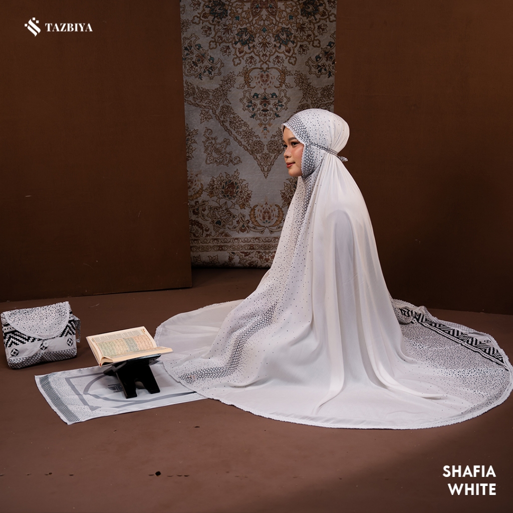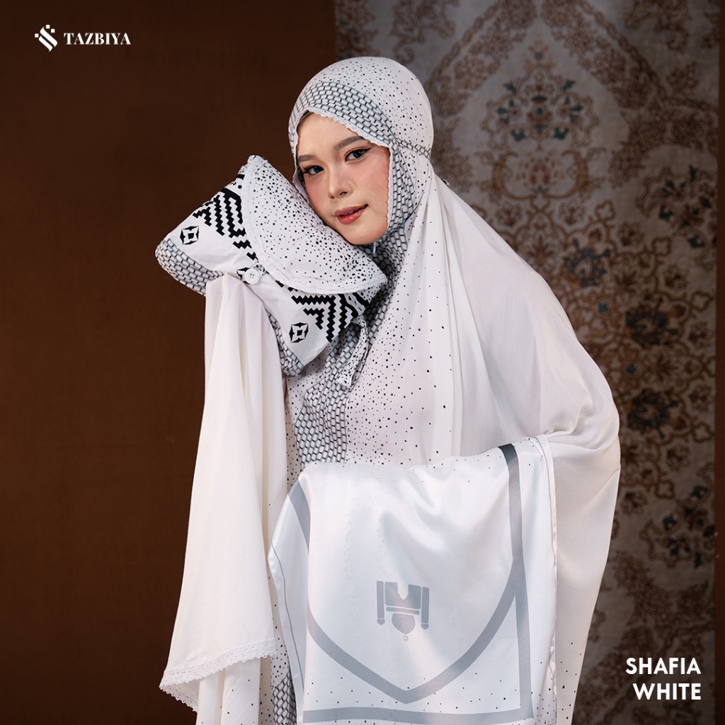 TAZBIYA MUKENA SET SAJADAH SHAFIA WHITE MUKENA RAYON RENDA 2 IN 1 OFFICIAL STORE