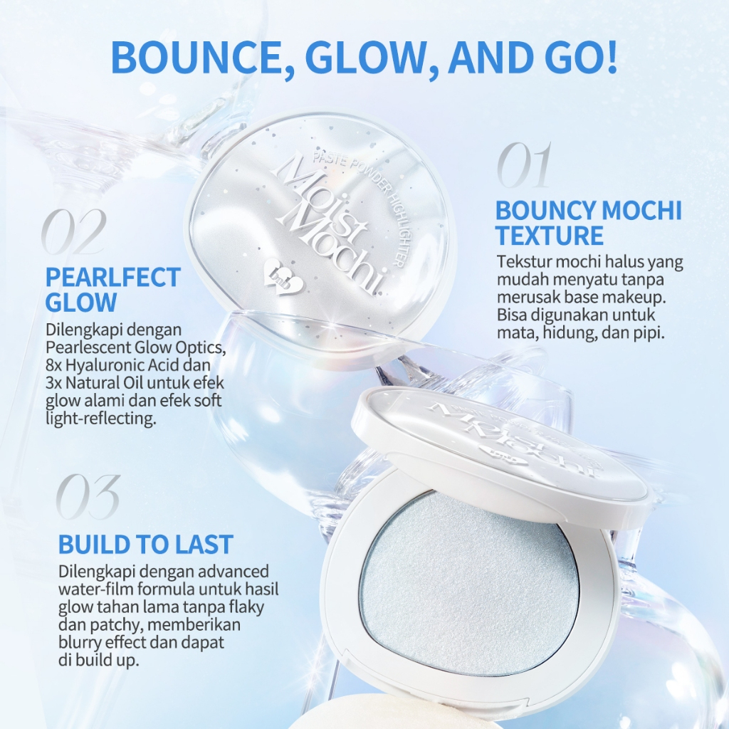 BNB Barenbliss Moist Mochi Paste Powder Highlighter mudah diblend tahan air dan tahan hingga 12 jam kilau bercahaya