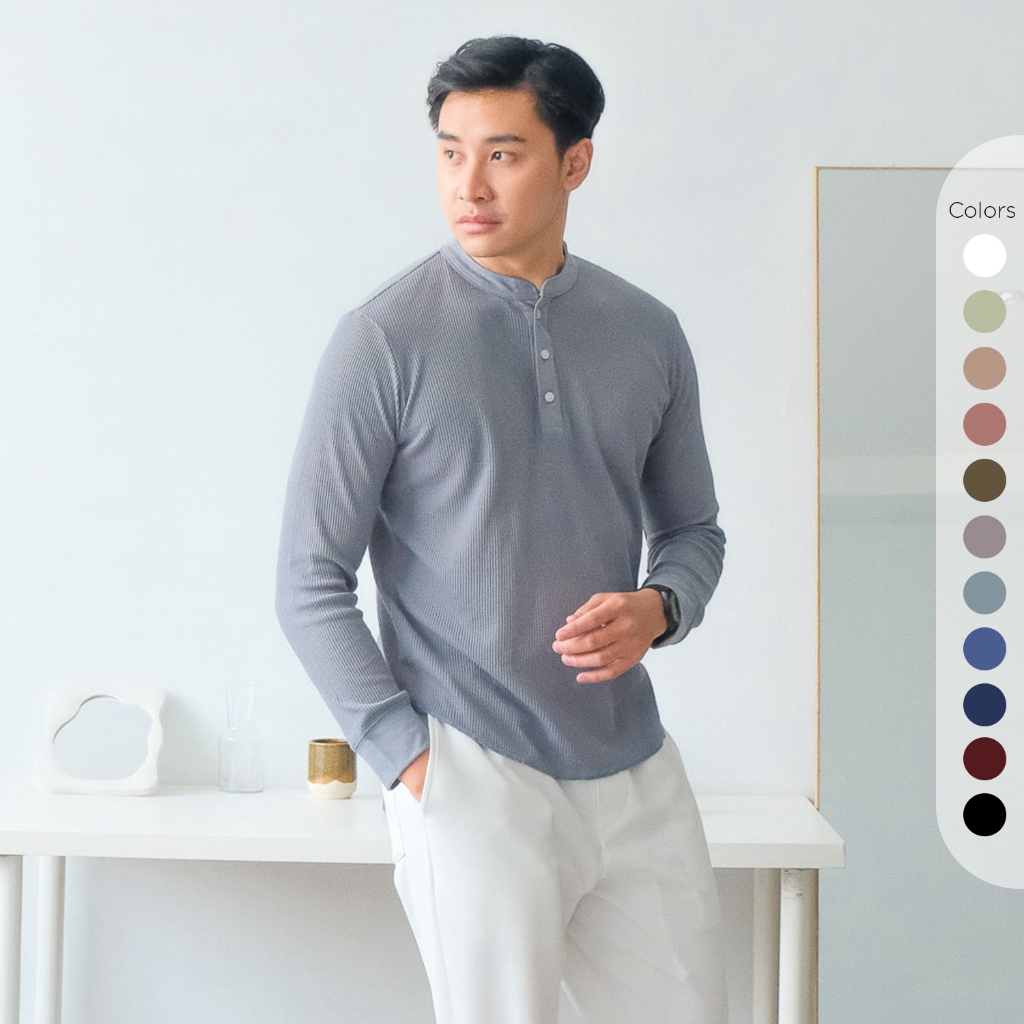 Isla for Men Smith Waffle Henley Neck T-Shirt Long Sleeve - Atasan Pria Lengan Panjang - Baju Pria - Baju Laki-laki