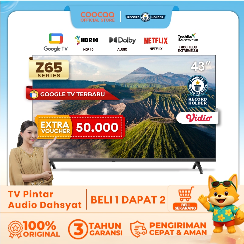 NEW COOCAA 43 inch Z65 - GOOGLE TV - 2K LED-TV - HDR 10 - Flicker Free - Low Blue Light - Eye Care - WIFI - USB/LAN (COOCAA 43Z65)