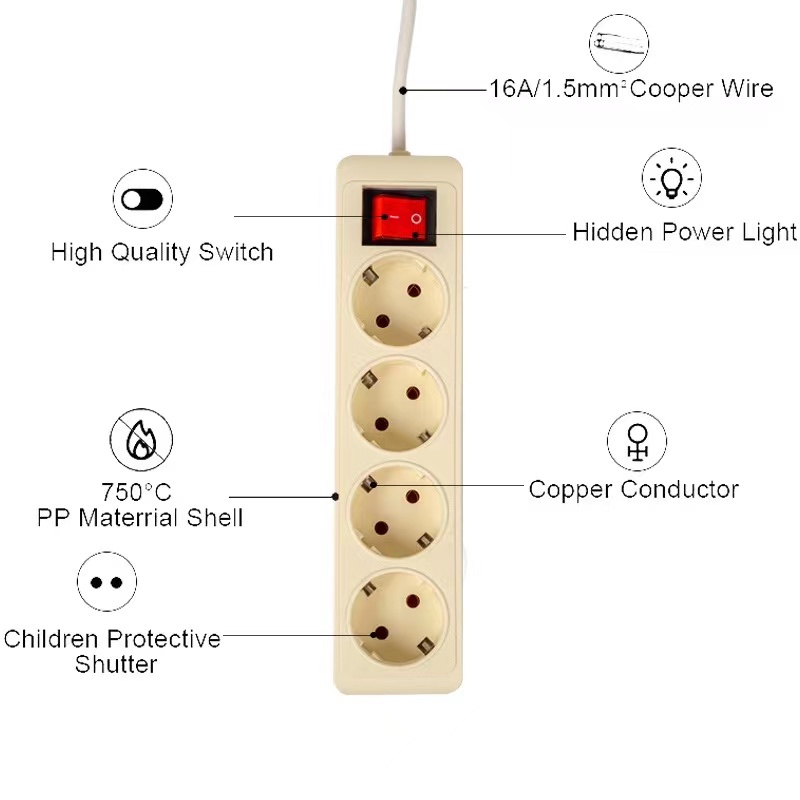 STOP KONTAK 2,3,4,5 LUBANG PANJANG 1,5M - 5M + KABEL / colokan listrik/MODEL GEPENG
