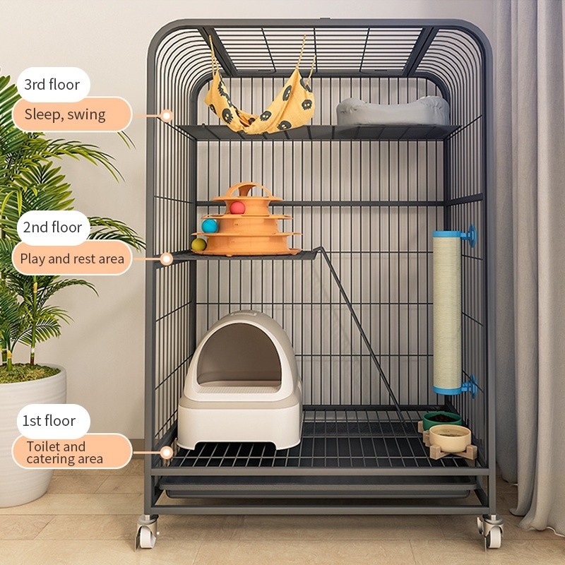 Kandang Kucing Ukuran Besar Dengan Rumah Kucing dan Kotak Pasir Cocok Untuk Dalam Ruangan