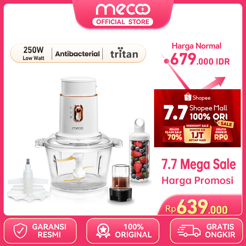 Mecoo Most Aesthetic 5 in 1 Chopper Antibacterial Odorless 250 Low Watt BPA Free white