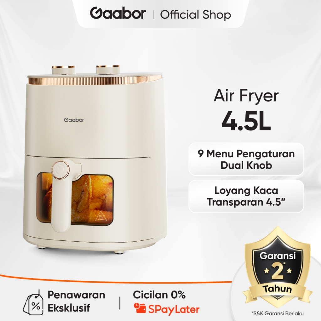 Gaabor Air Fryer Low Watt 4.5L Kenop Ganda Serbaguna Anti Lengket Kaca Transparan / AF-45M01A