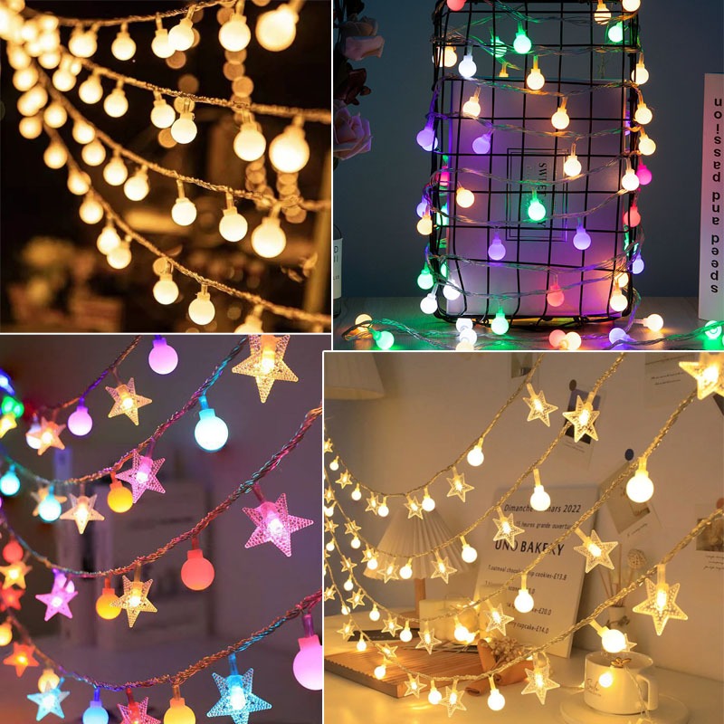 【Ready Stock】Lampu Bola LED Ball Kamar Tidur 10Meter Aesthetic String Light Lampu Hias Kamar Tirai Natal Baterai