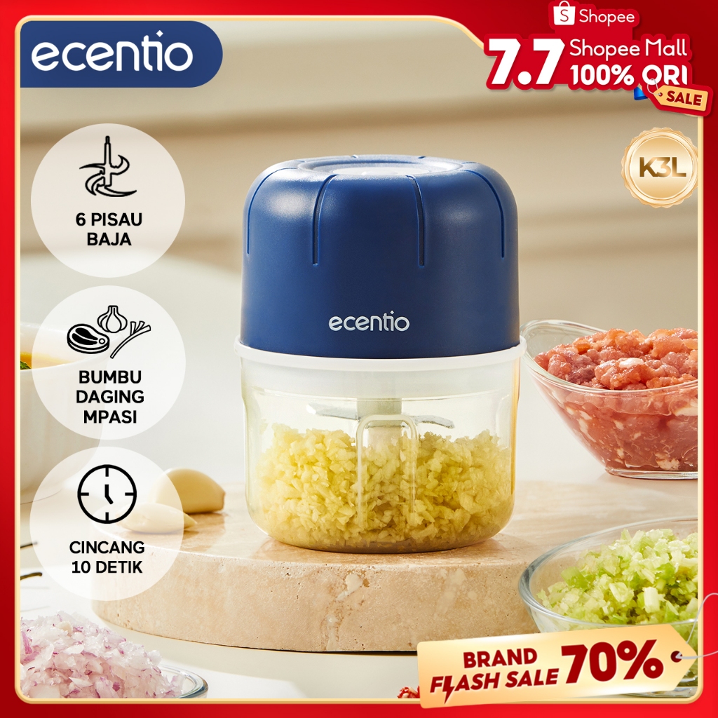 ecentio Mini Chopper Portable Food Grade Penghalus Bawang Multifungsi 250ML 6 Pisau Food Processor Elektrik untuk Bisa Daging & Bumbu