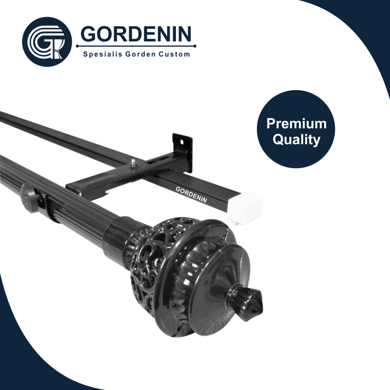 Batang Gorden Besi Full Set Dengan Tutup & Kaki / Batang Tiang Gorden / Full Set Rell Hordeng / Batang Gorden Fullset