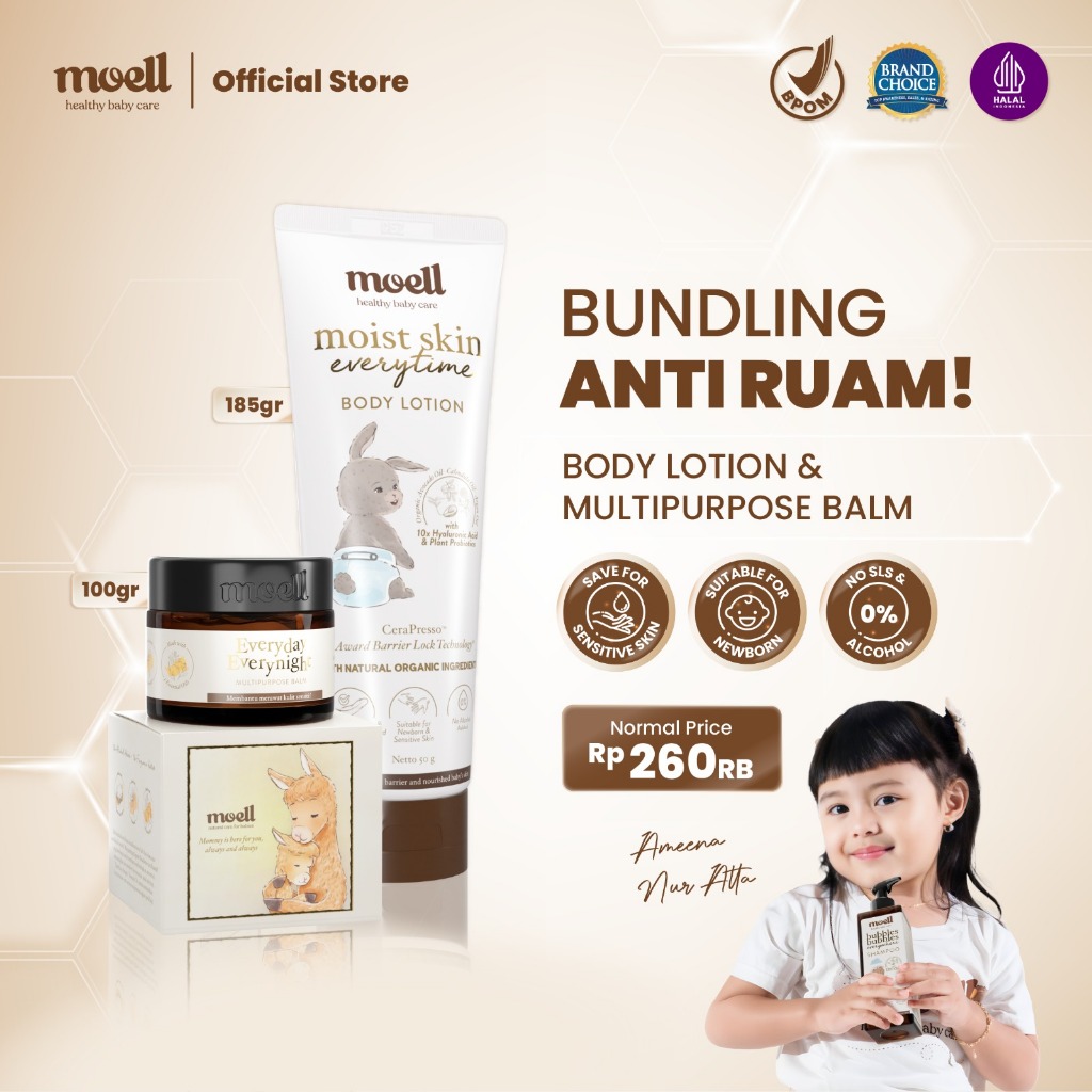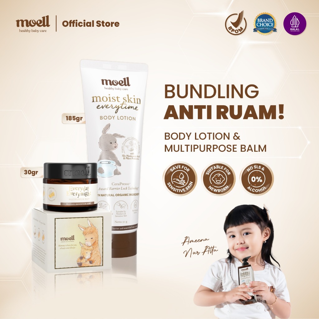 Moell Special Bundling Body Lotion 185gr & Multipurpose Balm 30gr - Skincare Baby - Natural Organic