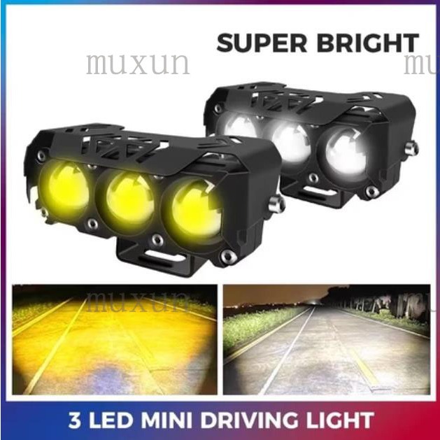 [Star] Spotlight Lampu Tembak Sorot Laser LED Foglamp SQL 3 Mata Waterproof Univesal Putih Kuning 12-24V Lampu Tembak Mo