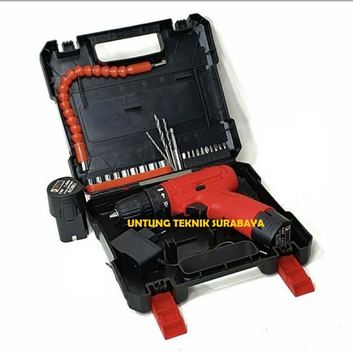 HDT CDD 405 Mesin Bor Cordless Cas Charger 12V Set Mata Obeng Baterai DISKON