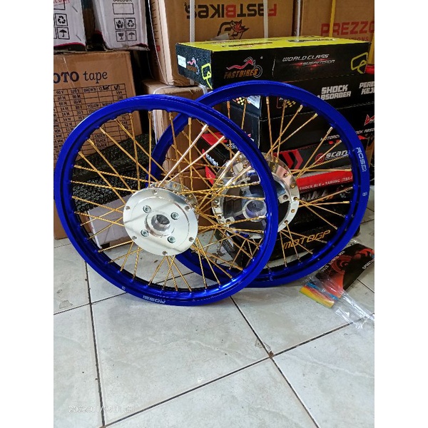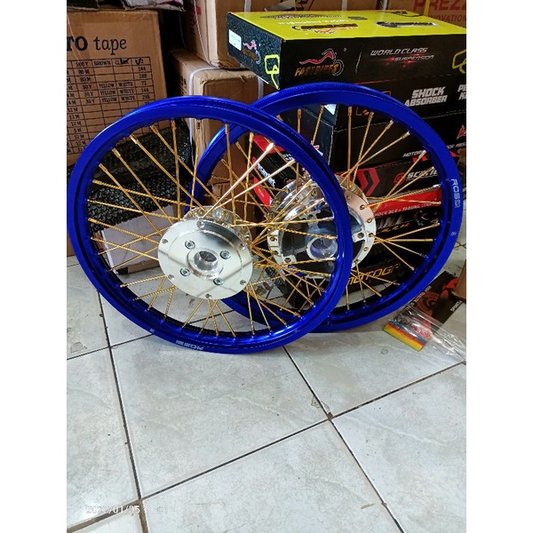 VELG CB 150 OLD NEW MEGAPRO MONOSHOCK VELG PAKETAN MOTOR HONDA CB150 OLD KOMPLIT MEREK ROSSI ORIGINAL UKURAN 17 160/140 SEPASANG WARNA BIRU