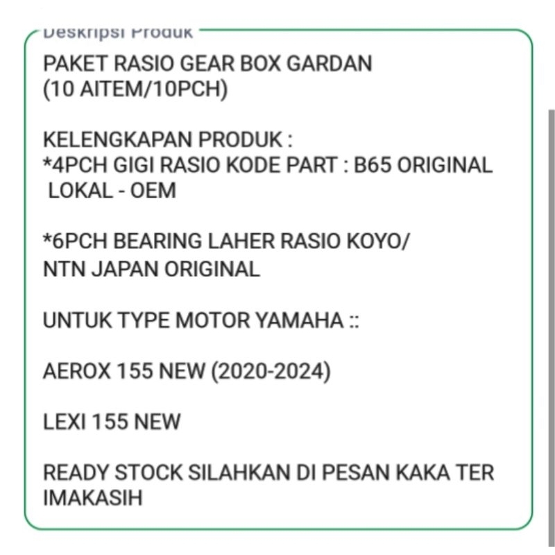 GIGI RASIO SET B6H 4PCH YAMAHA NMAX 155 NEW TH 2020 SAMPAI 2024, OEM SUPER