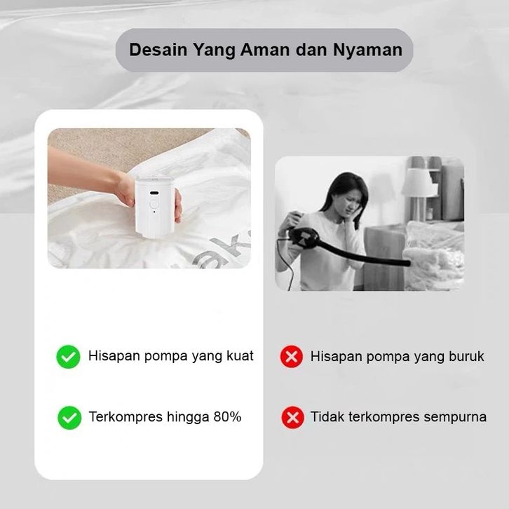 POMPA VACUUM WIRELESS / VAKUM BAG PORTABLE / PLASTIK VAKUM PAKAIAN,TRAVEL ORGANIZER PV006 U-LIVING PRAKTIS TANPA KABEL