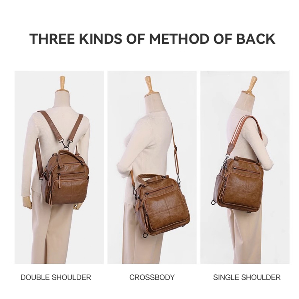 ORLEE WILL Tas Ransel Wanita Kulit Asli 4 in 1
