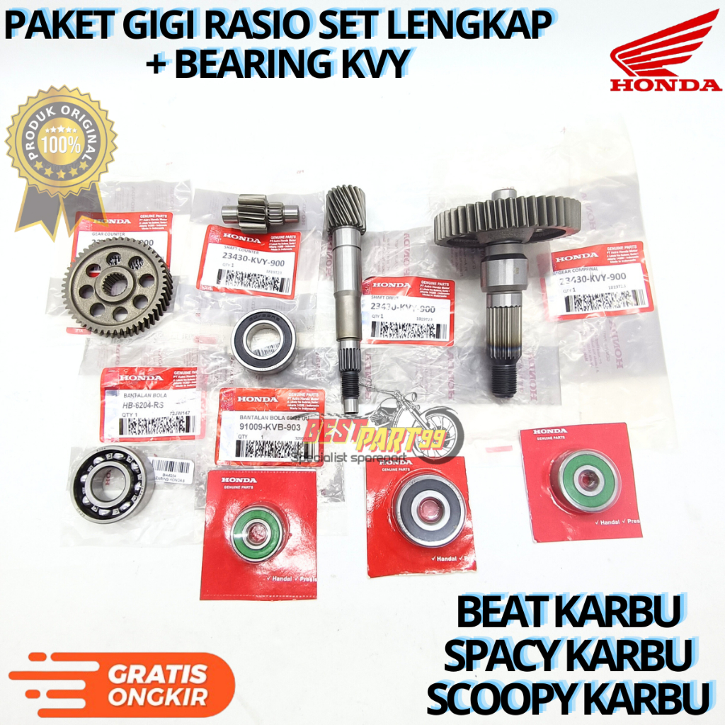 Paket gigi rasio set lengkap + bearing KVY honda BEAT SPACY SCOOPY KARBU. AHM kualitas original