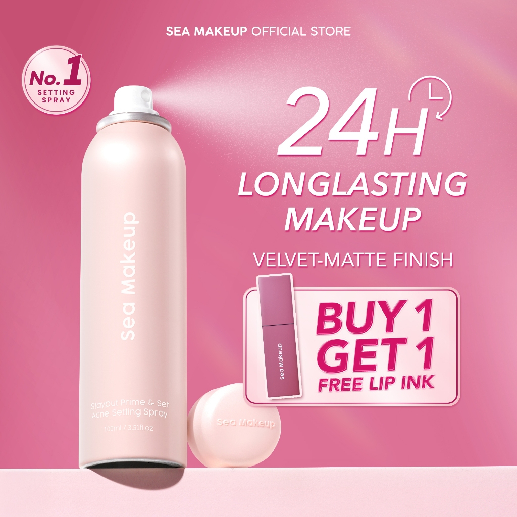 Sea Makeup Stayput Prime & Set Continuous Setting Spray - Longlasting makeup 24 jam flawless velvet finish fine