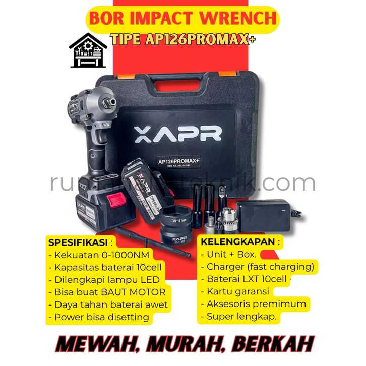 LIMITED PROMO APR IMPACT WRENCH AP126PROMAX+ 1000NM BODY KECIL TENAGA JUMBO VERSI LENGKAP DARI AP84 PROMAX BOR