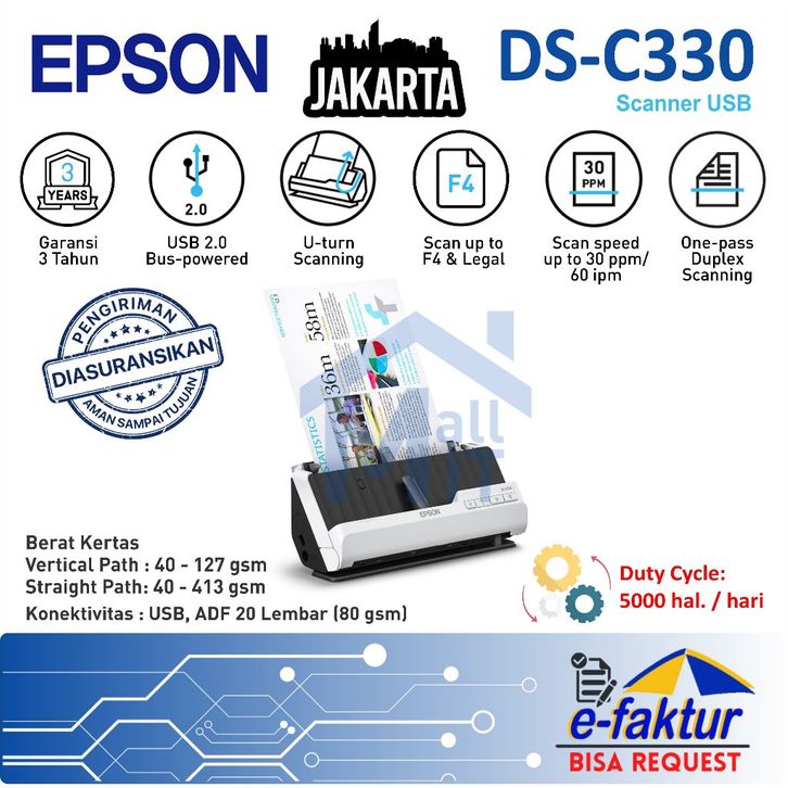 MALLIT EPSON Scanner Epson DS-C330 DSC330 C330 PORTABLE ADF Pengganti DS-310 DS310 Garansi Resmi