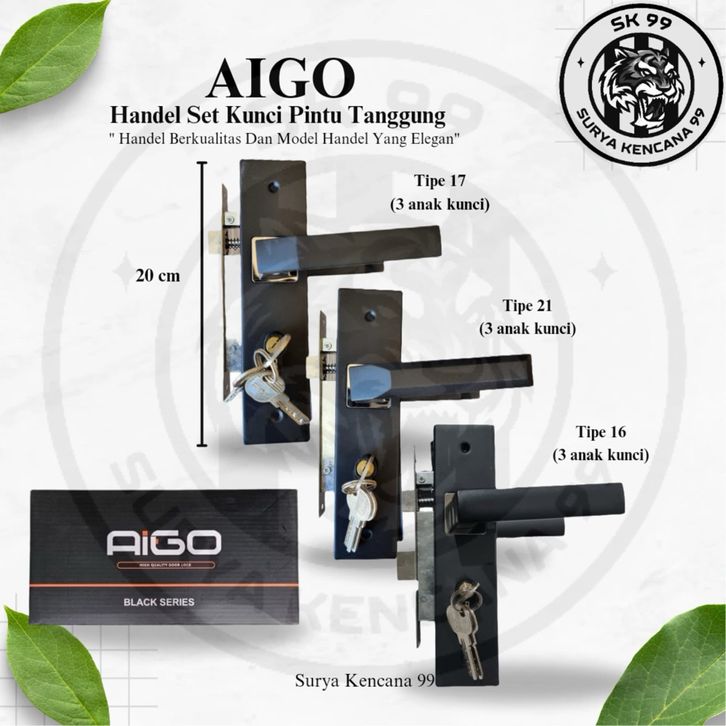 Gagang Pintu Minimalis Gagang Handel Handle Kunci Pintu Set Aigo Tanggung 20 cm Black