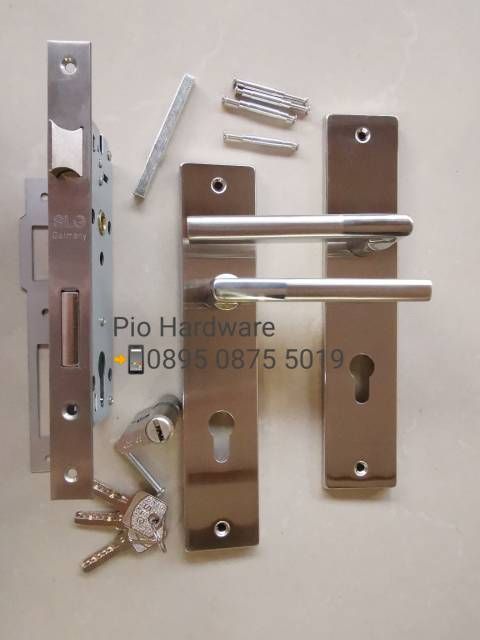 Gagang Pintu Minimalis Soligen 606-08 Handel Stainless - Gagang Pintu Rumah 25 Cm- Body Kunci - Silinder Kunci | 1 set