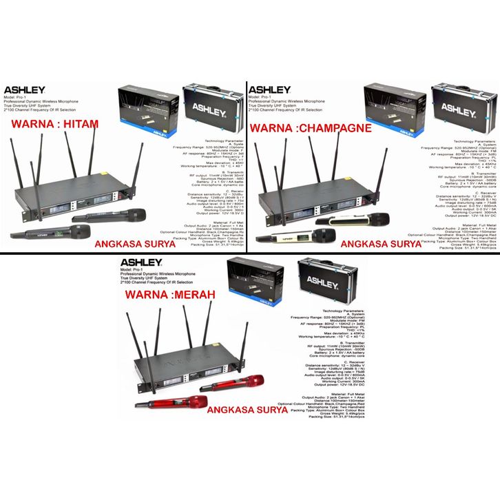 Mic Wireless ASHLEY PRO 1 PRO1 Pegang Handheld Handle Original Koper