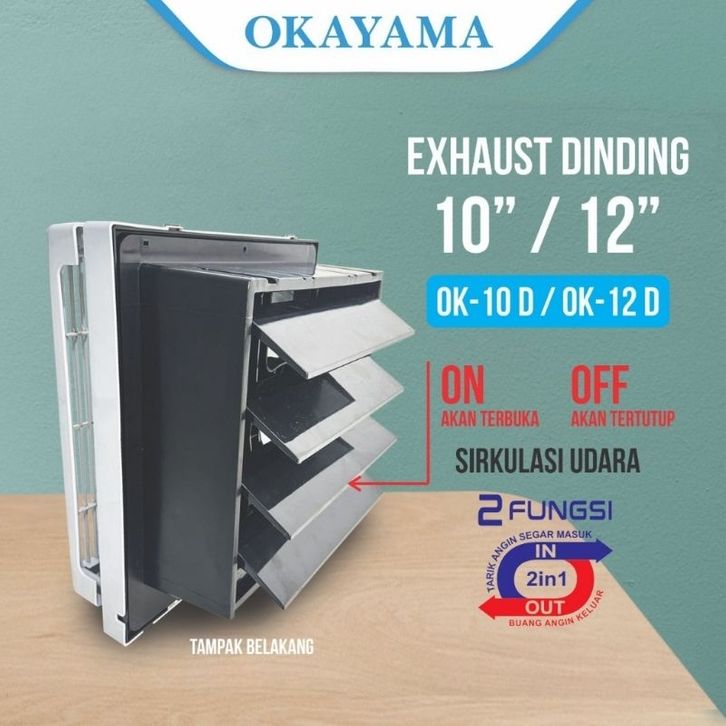 Okayama Exhaust Wall Fan 10" 2in1 (Hisap+Hembus) / Exhaust Dinding 2 Arah 10 Inch OK-10D