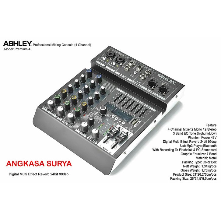 Mixer Audio ASHLEY PREMIUM 4 / PREMIUM4 4 Channel Equalizer Original Effect Reverb 99 Dsp