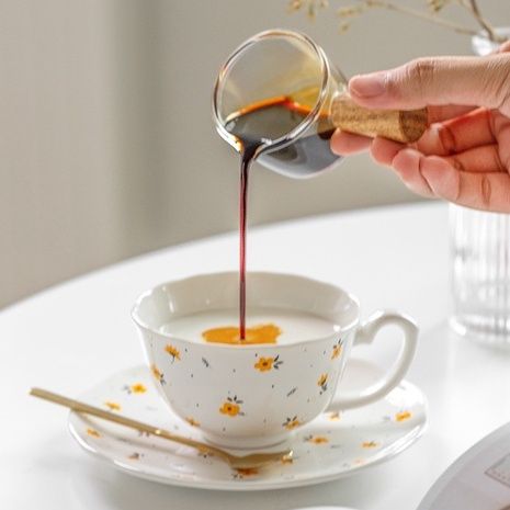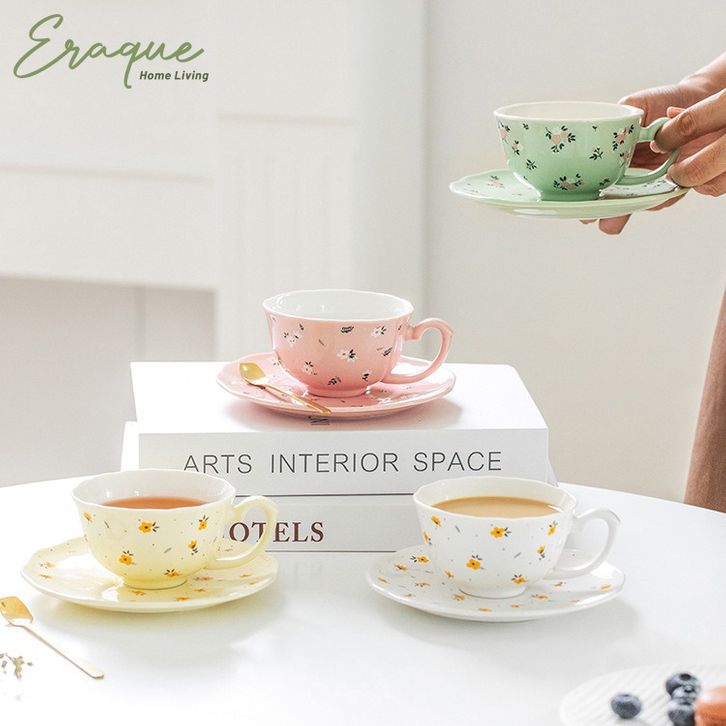 Promo Sunflower Tea Cup / Gelas Cangkir Teh Kopi Keramik Elegan Aesthetic Mewah Scandinavian Motif Bunga Keren
