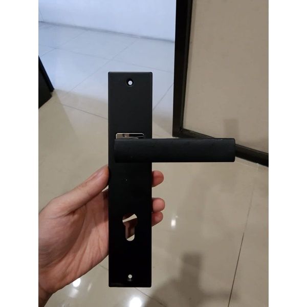 Gagang Pintu Minimalis AL BLACK / Handle Kunci Pintu Set Komplit BLACK HITAM Ukuran BESAR 25cm AIGO Full Black