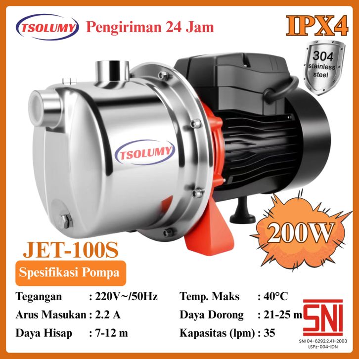 Tsolumy Pompa Air Sumur Jet Pump 200w Stainless Anti Korosi Mesin Jetpam Daya Dorong Kuat 21-25Meter Do2