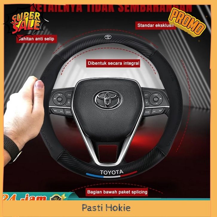 Sarung Stir Mobil Logo Brand Cover Steer Carbon Karbon Sport Kulit Domba Asli Original Toyota Premium Quality Emblem Aks