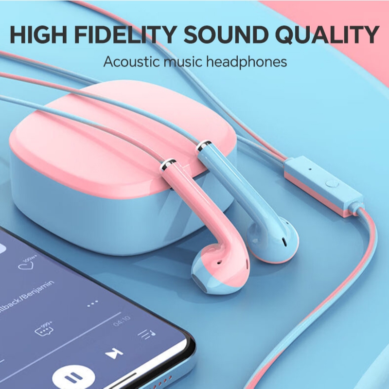 Kikishoot Headset 3.5mm Jack Wired Kabel Earphone Dual Color Macaron Earphone Storage Box Hp Komputer Gaming Music Mic H