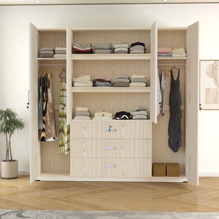 Lemari Pakaian Jumbo 4 Pintu Kayu Besar Wardrobe Modern Minimalis