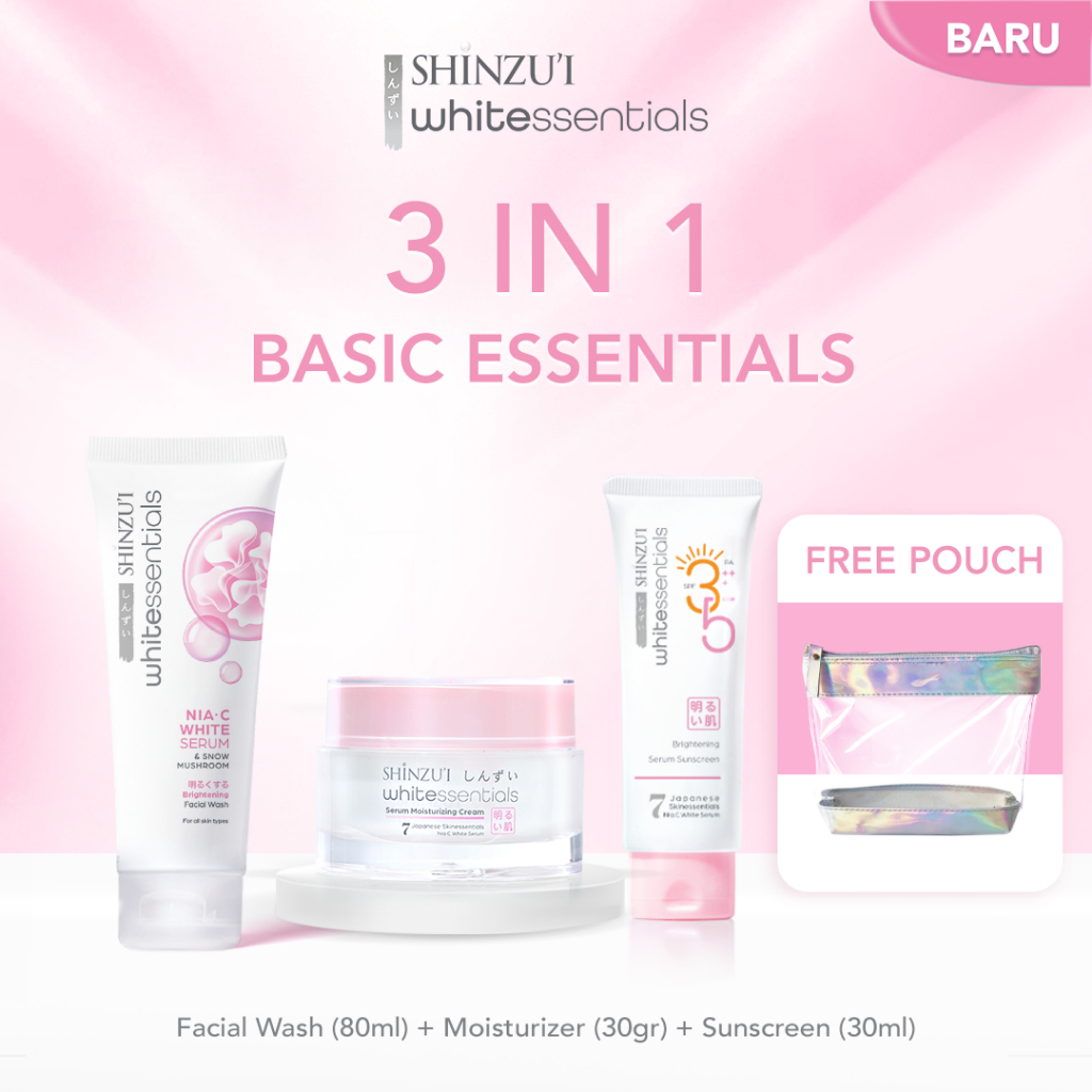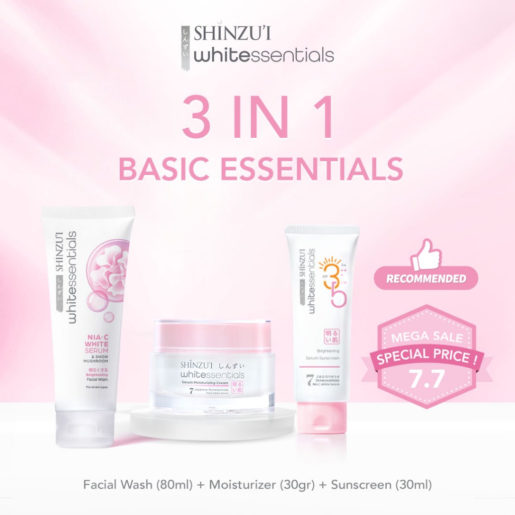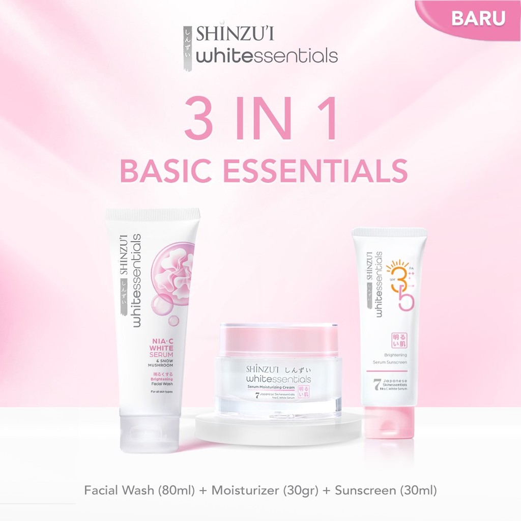 Shinzui Whitessentials Basic Essential Skincare Package ( facial wash 80ml , moisturizer 30 gr & sunscreen 30 ml )