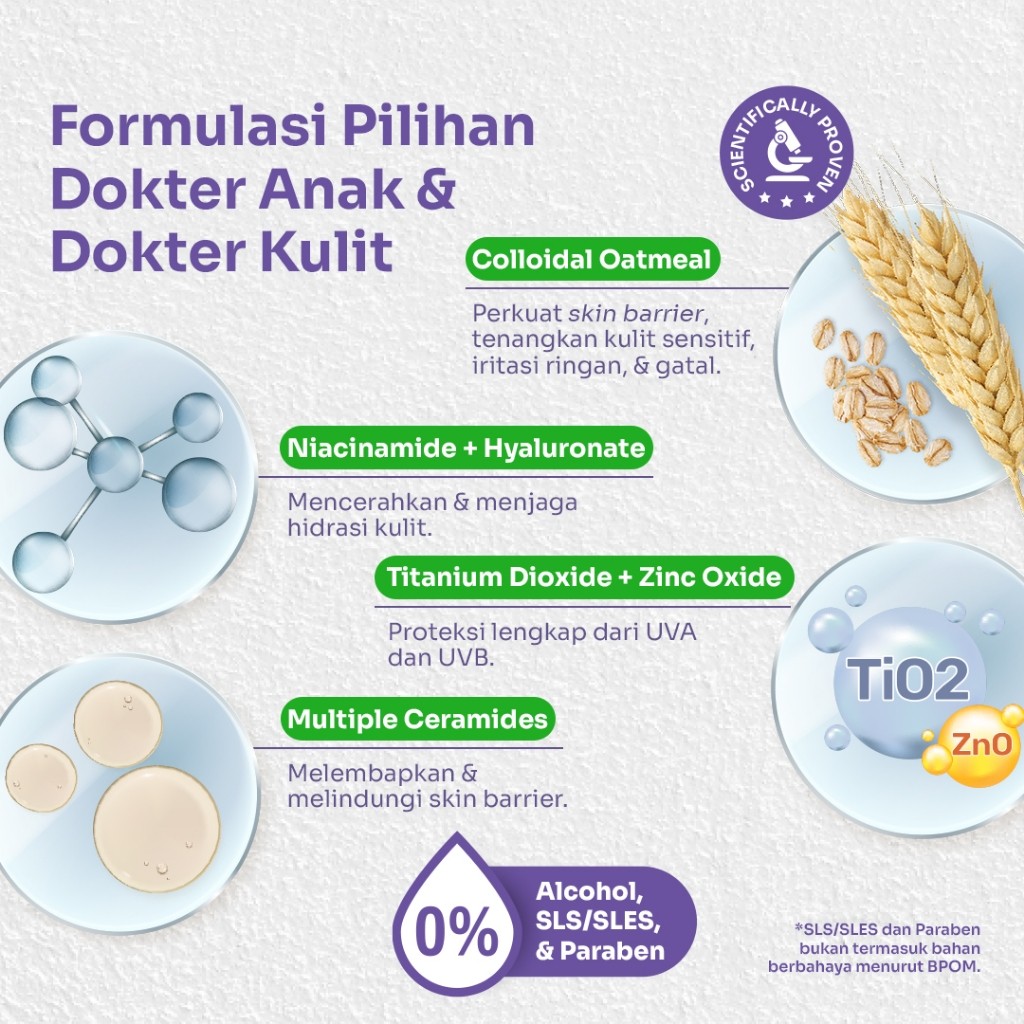 Sunscreen Bayi dan Anak - Expert Care Physical Sunscreen SPF 50+ PA+++ 50g dengan Colloidal Oatmeal - Proteksi Lengkap UVA UVB
