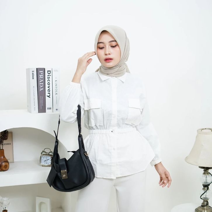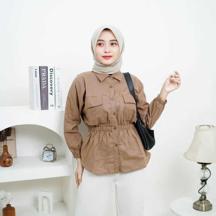 Beena Linen Shirt Top Atasan Wanita Blouse Casual
