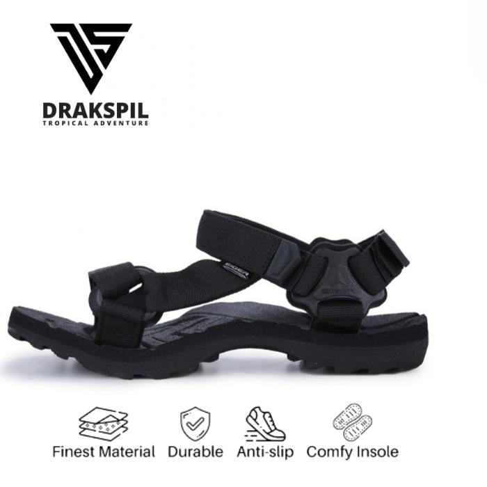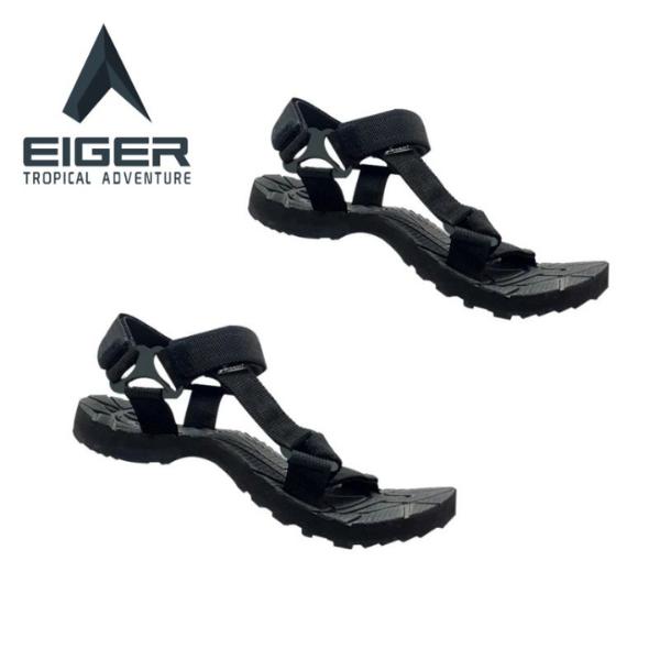 [Star]EIGER1989 100% ORI - Sandal Gunung EIGER1989 ORIGINAL Model Hitam Polos Motif Pria Wanita Terlaris - 37, Hitam