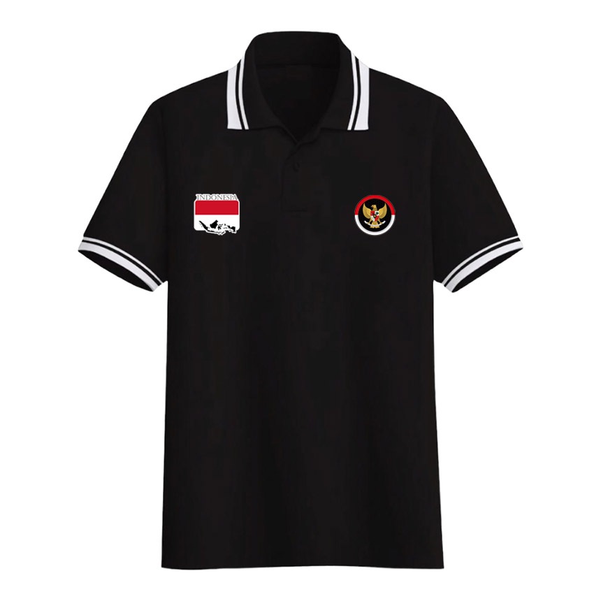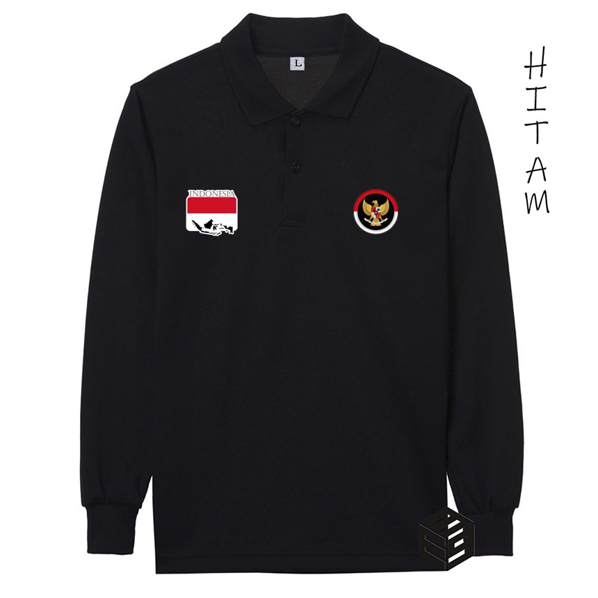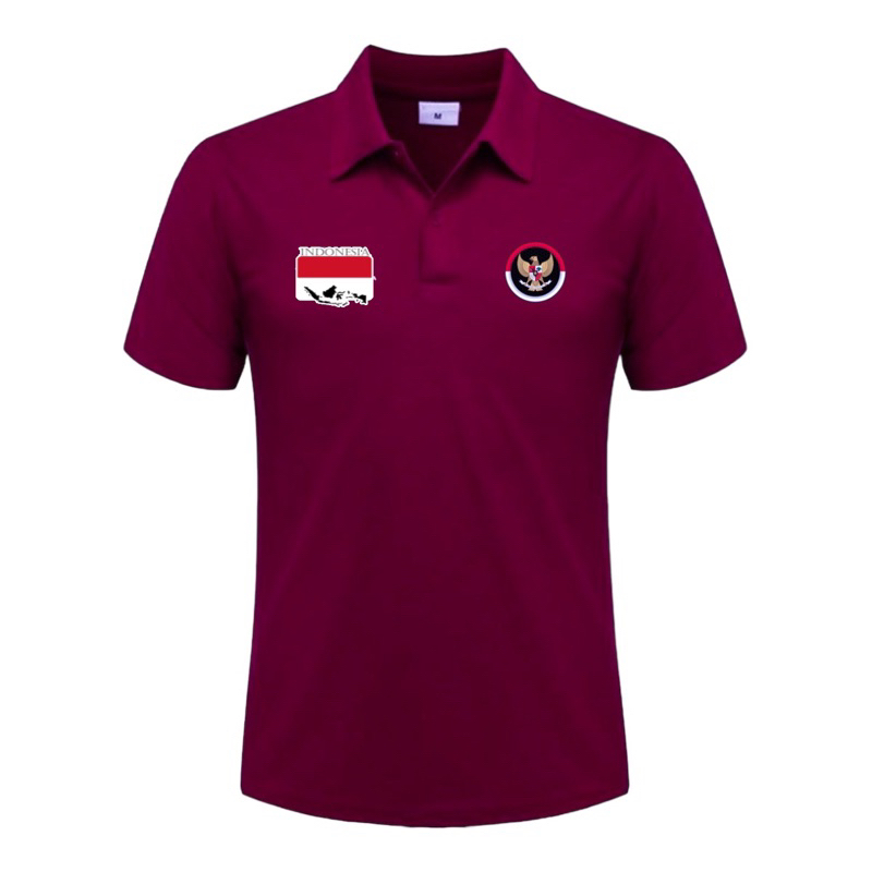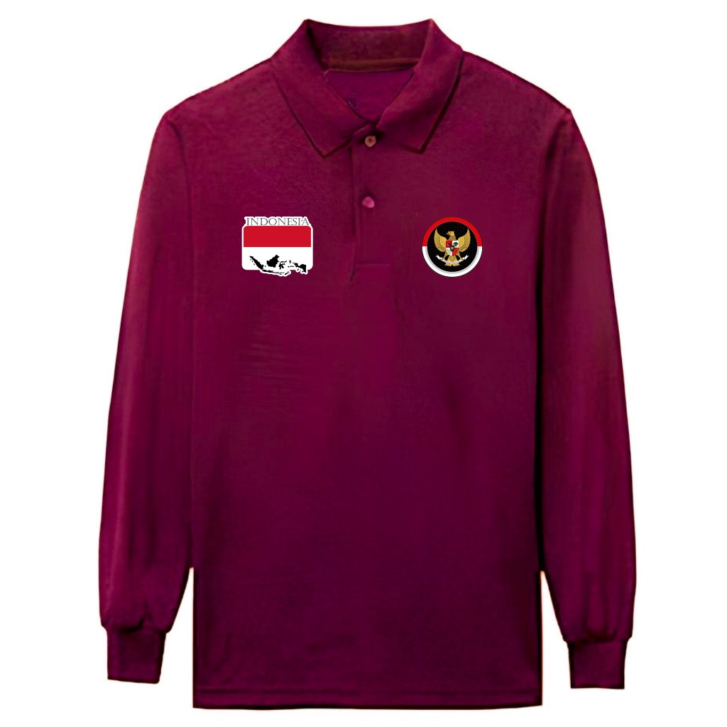 E39 Fashion - Kaos Polo Shirt Kerah Logo GARUDA Merah Putih Indonesia Lengan Pendek dan Panjang
