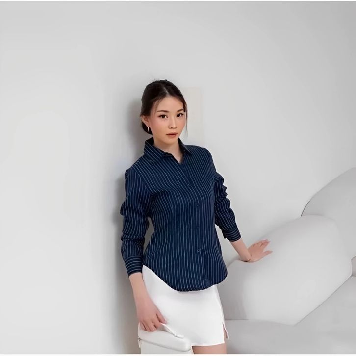 Luna Stripe Long Sleeve - Kemeja Fitted Wanita Atasan Lengan Panjang Salur