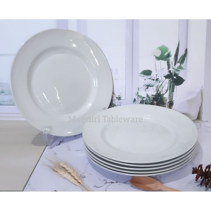 Piring piring Piring Makan Ceper Keramik Ukuran 27 cm | Putih Polos | Isi: 6 Pcs