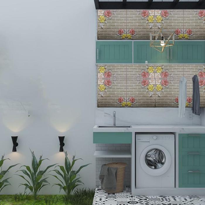Wallpaper Stiker 3D STICKER WALL DECORATION Motif Bata Bunga HXH016 - 29 X 29 Cm - multi warna