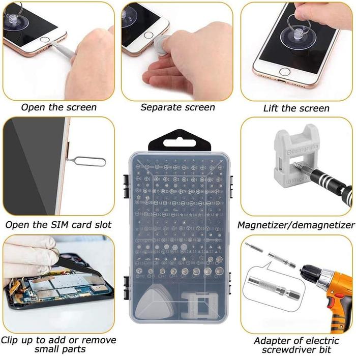 Obeng Set 115 In 1 Perkakas Service Handphone Laptop Radio Alat Elektronik - Obeng Set Dan Perlengkapannya - hitam