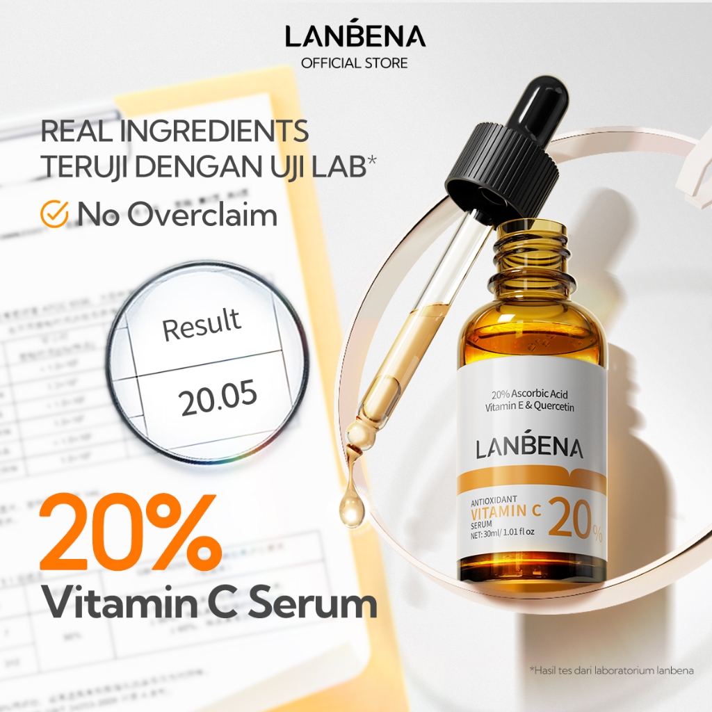 LANBENA 20 PERSEN Vitamin C + Vitamin E + Ferulic Acid Serum Brightening Anti-Aging Serum Peeling Serum Exfoliasi Wajah Perawatan Kulit Pemutih 7 Hari Skincare 15ml/30ml