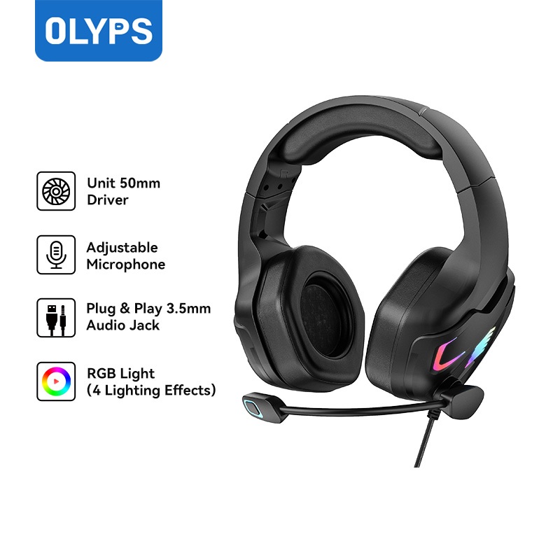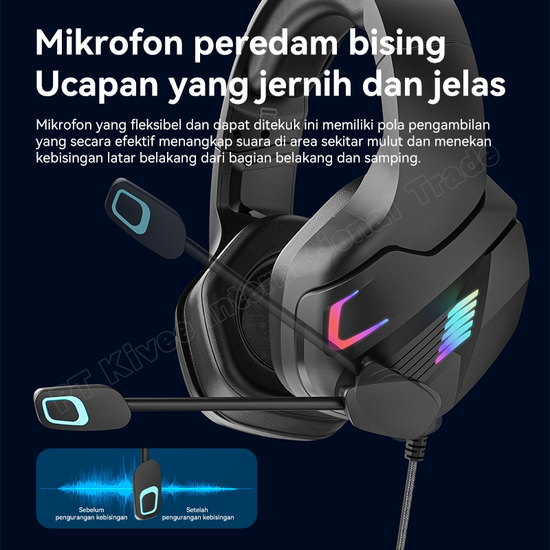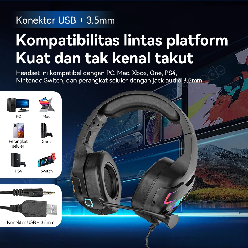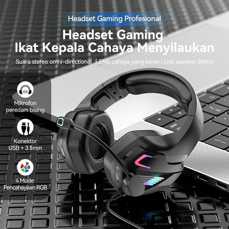 Headphone Gaming Super Bass dengan Mikrofon RGB LED Earphone Gaming Cocok untuk Ponsel