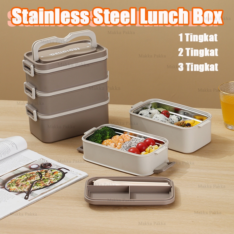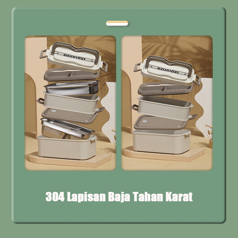 304 Stainless steel Lunchbox Rantang Kotak Makan 2 Tingkat 3 Tingkat Kotak Makan Siang Bento Dapat Dimasukkan Microwave