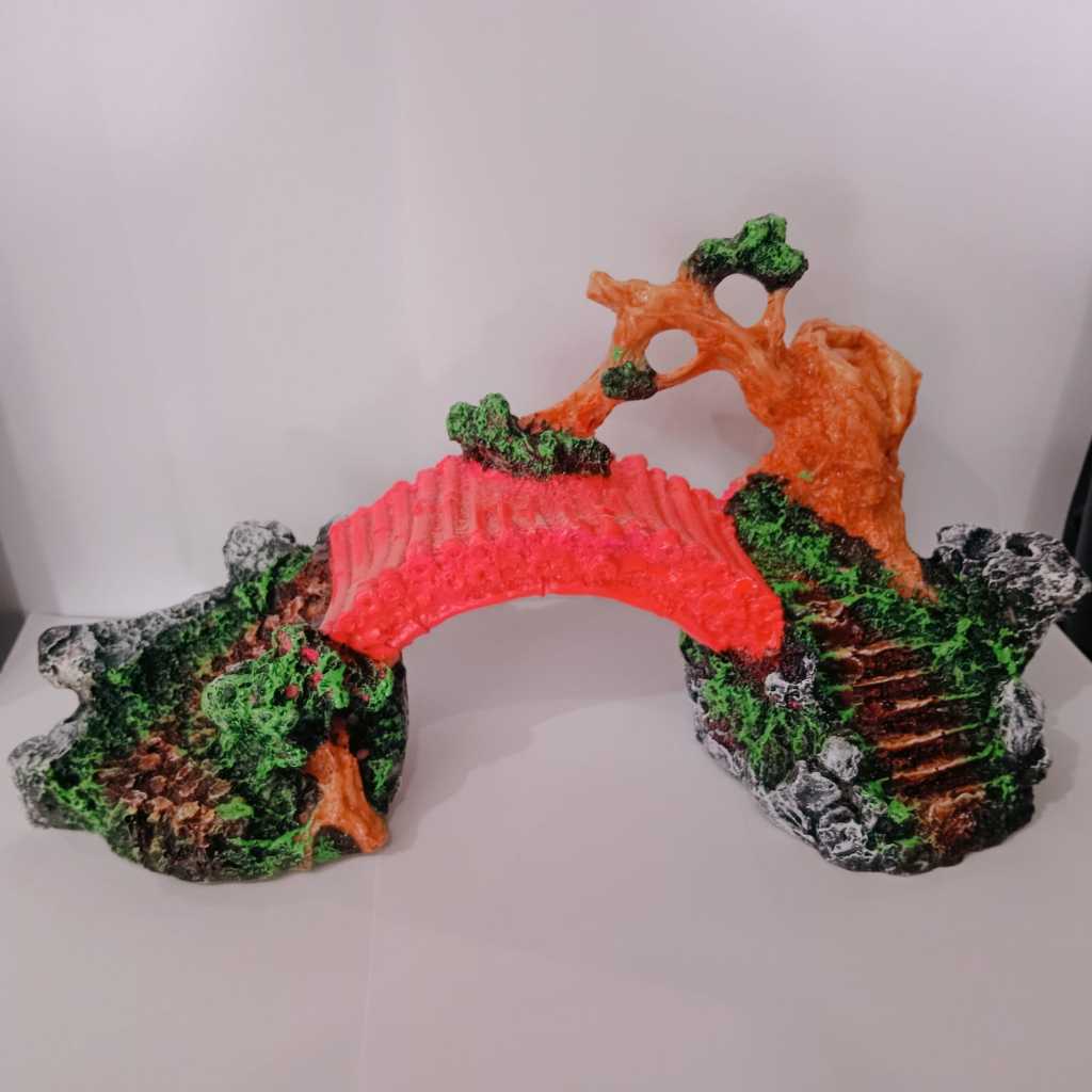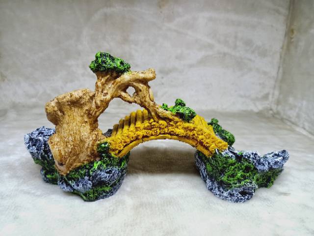 Hiasan aquarium fiber jembatan bambu tumpuk