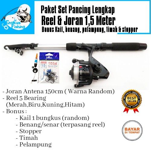 PROMO Set Paket Lengkap Pancing Reel & Joran 1,5 Meter Termurah - Engkus Fishing ORIGINAL