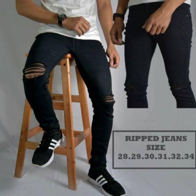celana jeans sobek lutut - celana sobek biru pria - skinny jeans ripped original