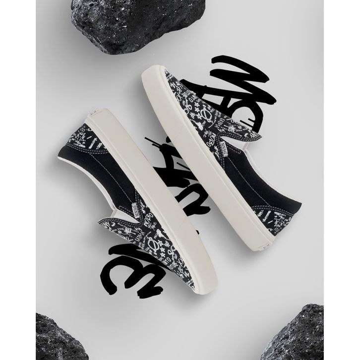 Promo Minusone Footwear - Sepatu Slipon Riot black white classic New